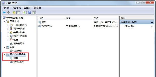 3、在左侧最下面的“服务和应用程序”里,选择“服务”;