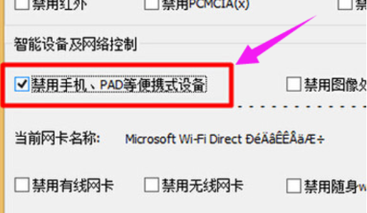7、接下来勾选“禁用手机、PAD等便携式设备”项,就可以将手机设置给禁用掉。