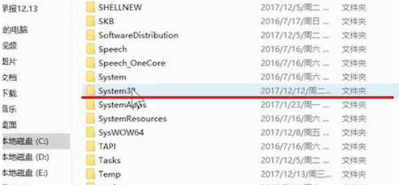 2,找到“Windows”文件夹,点击进入找到“System32”文件夹