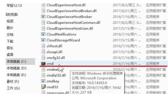 3,找到“cmd”文件,后右键点击“以管理员的身份运行”