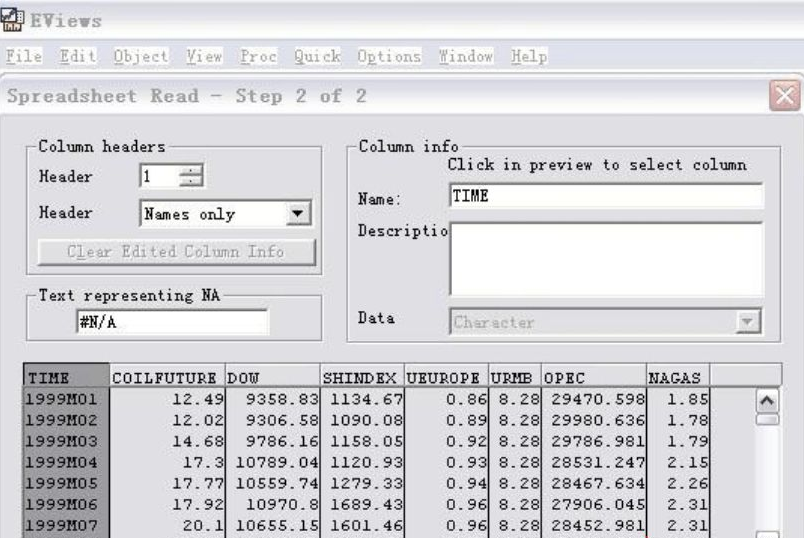 1、选择需要进行分析的excel表格,然后将电子表格里的数据导入到“eviews”,导入之后,点击“确定”。