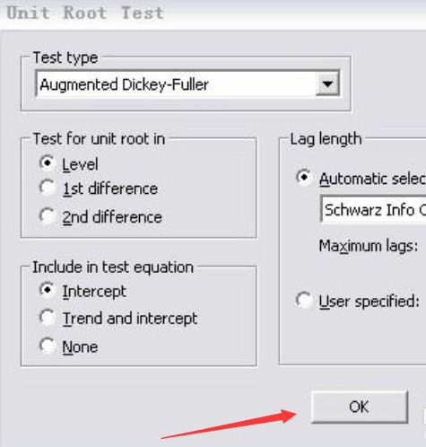 4、最后打开“test type”,点击“level”-“intercept”,点击“确定”,在点击OK就能获取结果。