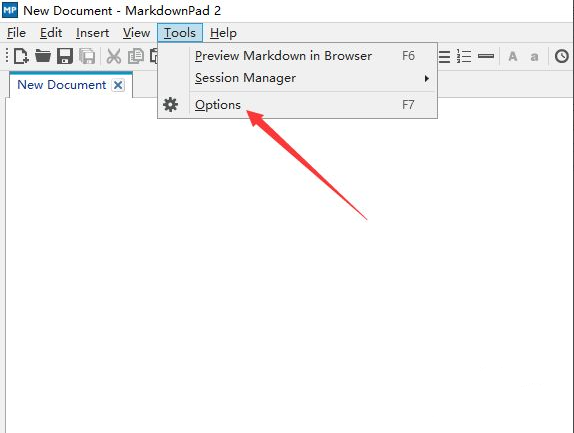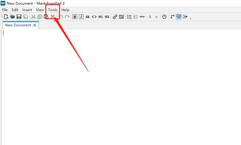 1、双击打开MarkdownPad2软件,然后在顶部菜单栏选择Tools选项。