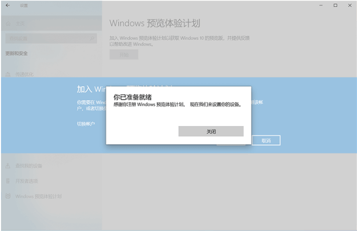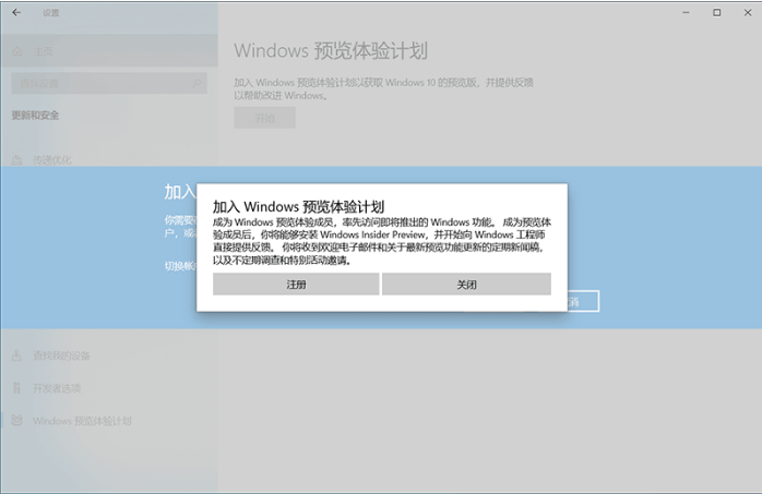 1、进入Windows 10“设置” 中的 “更新和安全”,点击 “Windows 预览体验计划”,如下图所示;