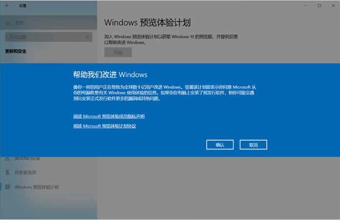 8、加入Dev通道后确定帮助并改进,并等待重启。如下图所示;