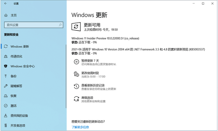 9、重启完成后,检查更新,我们就开始更新win11系统了。