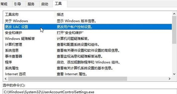 2、点击 工具 选卡,在下面选中更改UAC设置 ,然后点击启动按钮。如图所示: