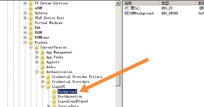 2、在注册表中找到Background,HKEY_LOCAL_MACHINE-SOFTWARE-Microsoft-Windows-CurrentVersion-Authentication-LogonUI-Background。