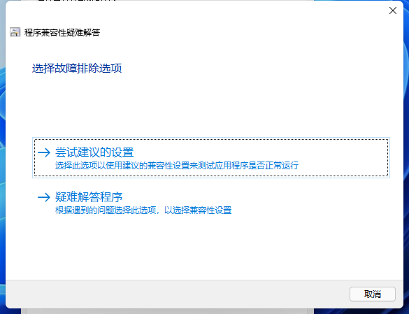 3、这时就会打开程序兼容性疑难解答的窗口,在窗口中点击“尝试建议的设置”快捷链接。