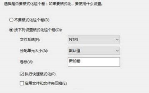 新建的简单卷磁盘格式选择“NTFS”即可。