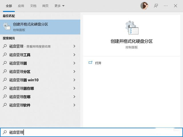 注意:显示的搜索结果不会是磁盘管理,而是“创建并格式化硬盘分区”。