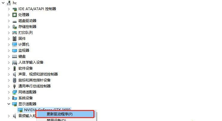 3、然后右键点击显卡设备,点击更新驱动程序。