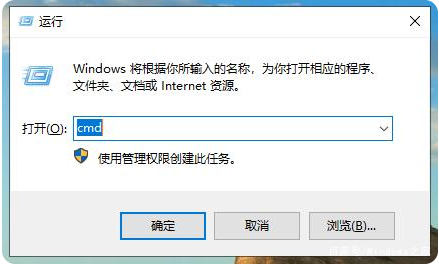 2、使用组合键win+R打开运行窗口,输入“cmd”打开命令提示符。