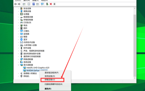 4、右击显卡驱动(显示适配器),在出现的菜单列表中选择“卸载”即可。