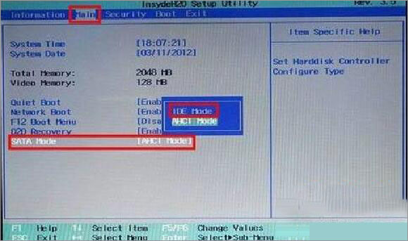 6、如果以上方法都不行的话,那么请在BIOS设置内把硬盘的模式从“standard mode”改成“enhanced ide(normal)”。