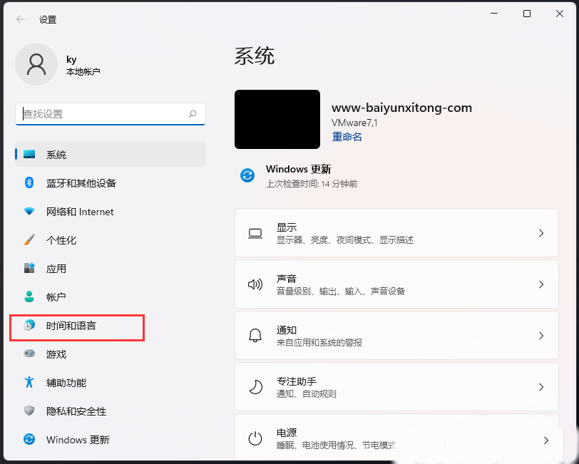 2、Windows 设置窗口,左侧边栏,点击时间和语言。