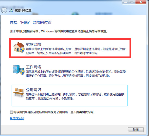 6、在弹出的窗口中点击“家庭网络”;
