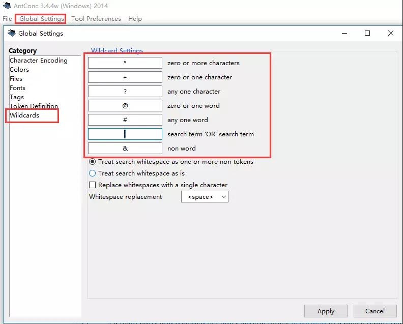 这些通配符表示的含义可以在“Global Setting”中进行查看及修改。