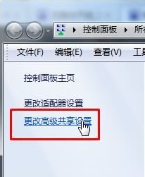 2、在网络界面点击左侧的“更改高级共享设置”。