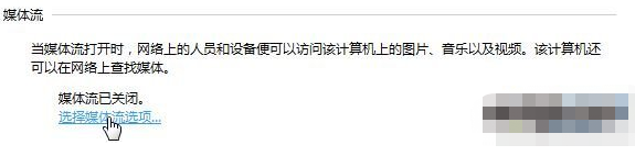 3、在“高级共享设置”窗口中点击“选择媒体流选项”。