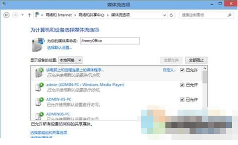5、点击“选择媒体流”链接,设置电脑上“媒体库”的名称(该名称将在其他电脑、手机或电视上显示)。