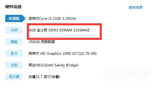 2、在硬件信息列表中可以看到当前内存频率大小。