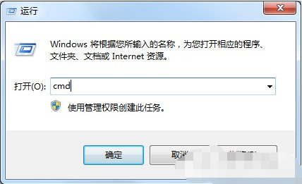 2、在弹出的运行对话框输入cmd命令,点击确定进入DOS界面。
