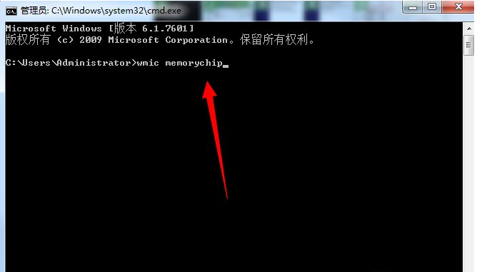 3、在命令行界面输入wmic memorychip命令,点击回车。