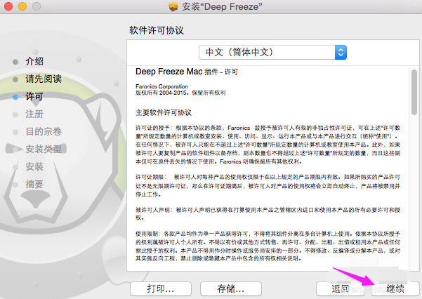 同意许可协议之后。我们点击继续。会弹出入邪对话框。要求输入许可证密钥,输入之后就可以激活冰点软件了