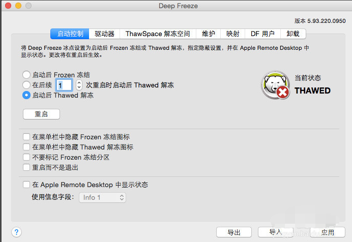 登录冰点精灵之后在mac左上角会显示DFXControl选项,点击它