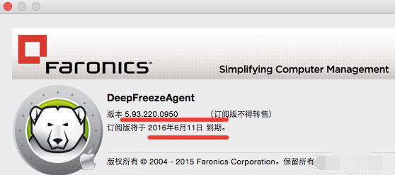 弹出对话框,将会显示我们冰点软件的版本和使用时间,证明注册成功。