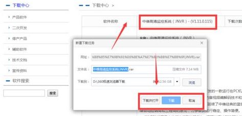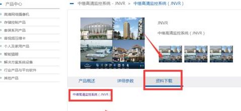 2、【产品中心】的页面,在“中维高清监控系统 - JNVR>中维高清监控系统(JNVR)”页面,选择“资料下载”,点击“中维高清监控系统(JNVR)”,如图: