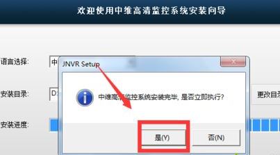 2、【JNVRSetup】的窗口,系统会发出一条警告:中维高清监控系统安装完毕,是否立即执行?,点击“是”按钮,如下图所示: