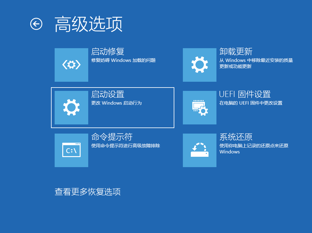 4、在高级选项中我们选择启动设置选项。