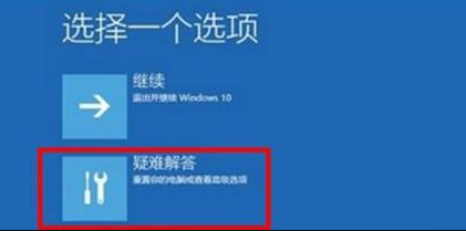 1、首先长按电脑主机的电源键,等待关机后再按下电源键开机,重复三次,出现选项窗口,进入安全选择,点击“疑难解答”。