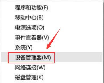 3、在开始菜单按钮上单击鼠标右键,在弹出的菜单中点击“设备管理器”。