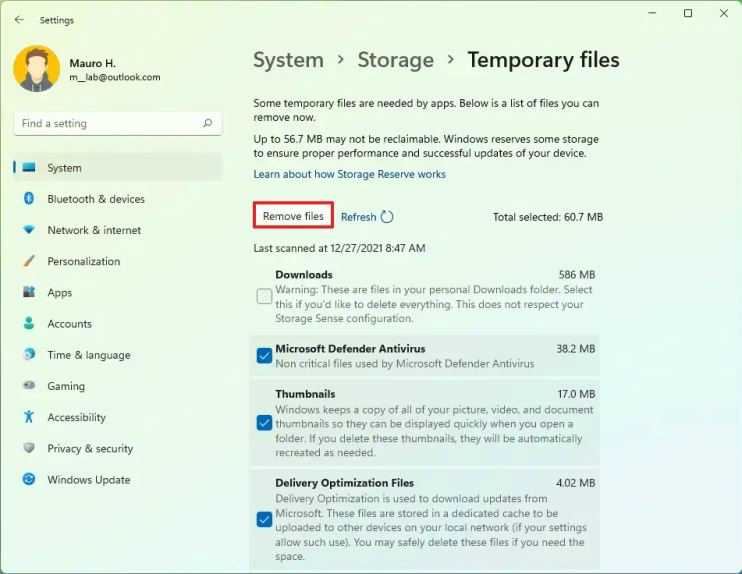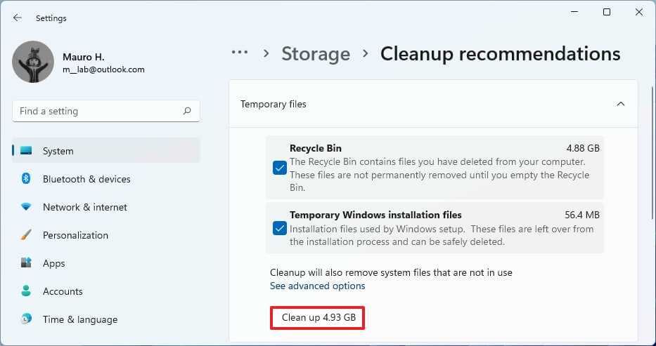 快速提示:您还可以单击查看高级选项以访问“临时文件”设置以清理更多文件。