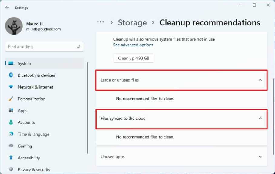 “清理建议”是 Windows 11 的一项新功能,可自动识别可以删除的内容,以帮助释放计算机上的硬盘空间,包括垃圾、未使用、大文件和未使用的应用程序。