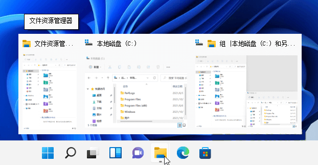 一旦您选择一个布局,win11会自动将其他窗口分配到屏幕不同位置。并且,win11还会自动将该布局中的应用作为一个“组”记住,这意味着当您可以将鼠标悬停到任务栏中组内应用的图标上,点击之后选择将整个分组弹出,系统会自动将这些窗口重置为起初分组的布局,即便窗口早已打乱。