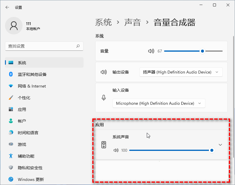 然后单独调整每个应用的音量大小,需要注意的是,只有当应用正在发出声音,它才会出现在这个位置。