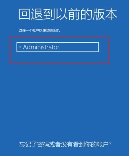 5、出现账户选择页面后,选择你正在使用的账户,一般都是Administrator,直接点击即可。
