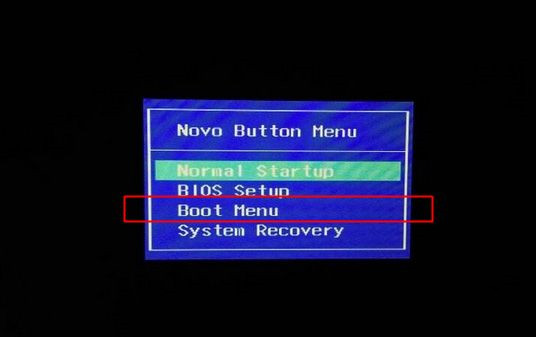 2、之后会显示novo button menu,按↓方向键选择Boot Menu,按Enter键。