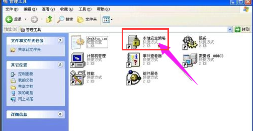 控制面板中依次打开【管理工具】,然后点击【本地安全策略】