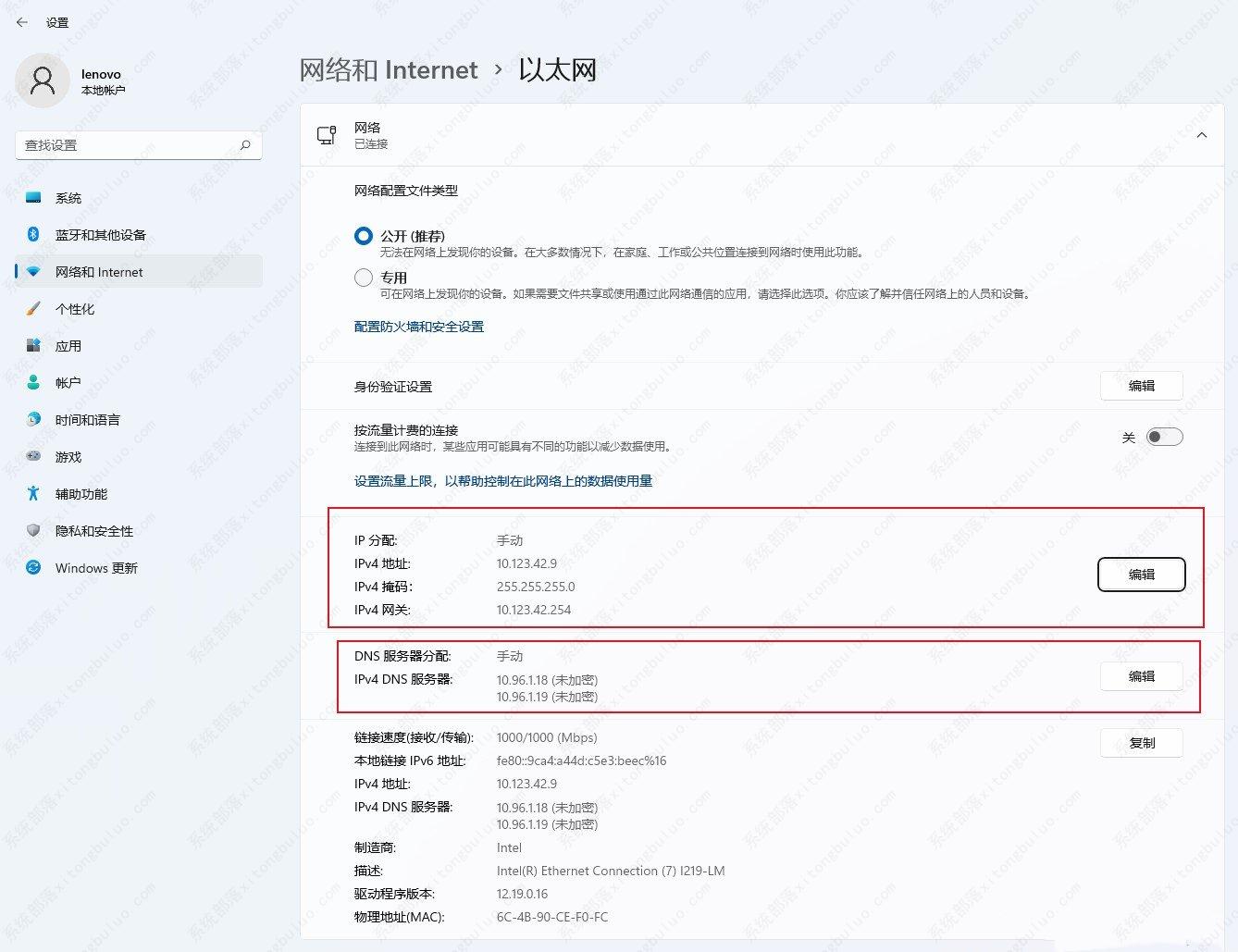 2、选择需要编辑的选项,如果需要编辑IP地址,选择IP地址后面的编辑按钮,如果需要编辑DNS,则选择DNS地址后面的编辑按钮,两个编辑按钮都可以选择。
