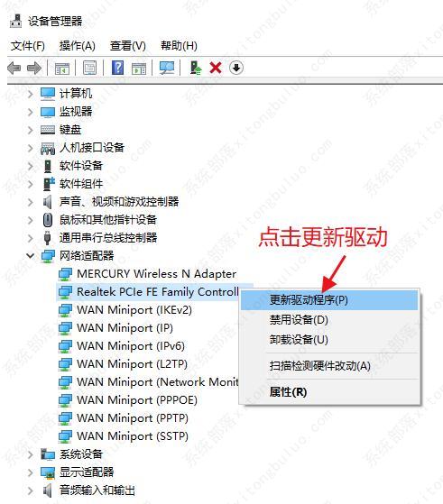 1、步骤和方法一中的1,2,3步一样,依次是系统桌面找到“此电脑”图标,鼠标右击在菜单项找到“属性”,再找到“设备管理器”点击进入,再找到“网络适配器”网卡驱动项,鼠标右击找到“更新驱动程序”即可,如图: