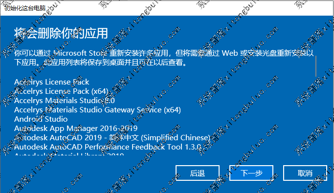 1、已安装的应用程序会全部清理掉,重置后需要自行重新安装软件。