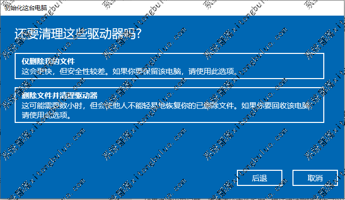 3、如果选了删除所有内容,那么会提示这个,一般选第一个即可,除非你要将你的电脑卖二手处理,才选择第二个。