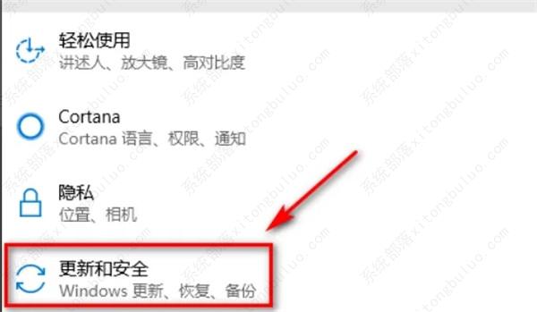 2、进入“设置”界面,点击“更新和安全”。