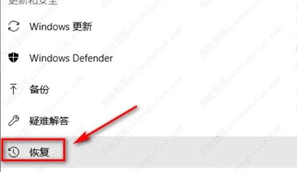 3、进入“更新和安全”界面,点击“恢复”。