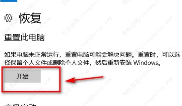 4、进入“恢复”界面,点击“开始”。
